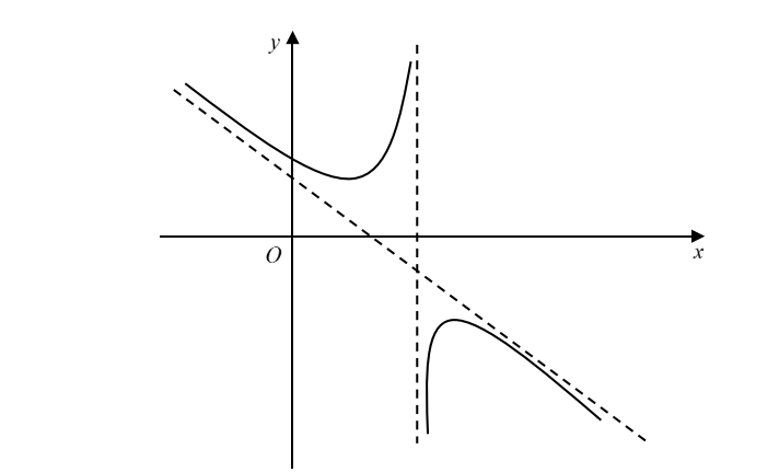 A sketch of the curve $y=\frac{a{{x}^{2}}+bx+c}{x+d}$, where $a$, $b$, $c$ and $d$ are constants, is shown, not to scale, in the diagram. The equations of the asymptotes, also shown in the diagram, are $x=2$ and $y=3-2x$.